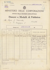 Privativa industriale per un modello ornamentale. Testo descrittivo della registrazione: "Oggetto costituito da una base di forma di ottaedro regolare con scanalatura per matita e incavo circolare per alloggiarvi il calamaio, sulla quale è montato un porta penna snodabile".