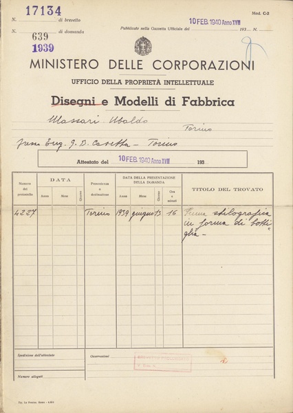 | attuale | 19:38, 31 ago 2025 | 4 445 × 6 247, 4 pagine (1,9 MB) | Piccardi (discussione | contributi) | == Dettagli == {{InfoModello |Numero=11270 |Data=1929-08-12 |Richiesto=1928-05-15 |Marca=Mastilo |Titolare=Ubaldo Massari |Tipo=di fabbrica |Titolo=Penna stilografica in forma di bottiglia |Domanda=639 |Ufficio=Torino |Fonte=[https://tecadigitaleacs.cultura.gov.it/media/ricercadl?rictree=MINISTERO+DELL%27INDUSTRIA%2c+DEL+COMMERCIO+E+DELL%27ARTIGIANATO%2fUFFICIO+ITALIANO+BREVETTI+E+MARCHI%2fArchivio+generale%2fModelli%2fBrevetti+dal+n.+1+al+n.+100.000 Archivio Centrale dallo Stato] }} |
