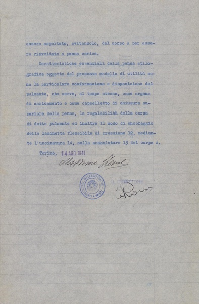 Privativa industriale per un modello di utilità della Zemax. Testo descrittivo della registrazione: "Penna stilografica con pulsante e cappuccio di protezione in corpo unico registrabile".