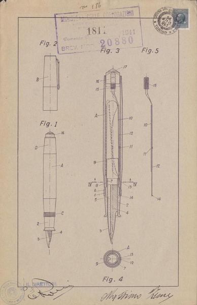 Privativa industriale per un modello di utilità della Zemax. Testo descrittivo della registrazione: "Penna stilografica con pulsante e cappuccio di protezione in corpo unico registrabile".