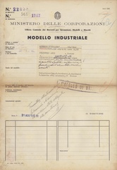 Privativa industriale per un modello di utilità. Testo descrittivo della registrazione: "Dispositivo applicabile alle penne stilografiche per far scendere l'inchiostro in quantità regolata nel pennino, quando i canali alimentatori diventano asciutti".