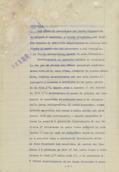 Privativa industriale per un modello di utilità della Giacomazzi. Testo descrittivo della registrazione: "Dispositivo di attacco del fermaglio elastico al coperchio di chiusura delle penne stilografiche, e simili.".