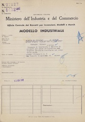Privativa industriale per un modello di utilità. Testo descrittivo della registrazione: "Congegno di trattenuta e svincolo di pulsanti per penne stilografiche ad elemento scrivente rientrante nel corpo della penna".