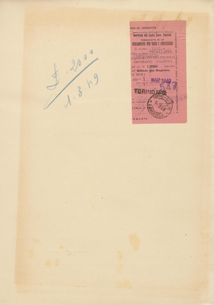Privativa industriale per un modello di utilità. Testo descrittivo della registrazione: "Penna a sfera per tracciare contemporaneamente le cinque righe costituenti il rigo musicale".