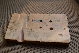 A wooden board with appropriate incisions used for the restoration of dents, in particular for the cap heads use the troughs created with a drill in the lower right part.