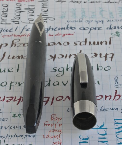 Photo of a pen produced by Sheaffer. Model: Sheaffer PFM. Filling system: "Touch Down snorkel". In black plastic resin. Version PFM-I.