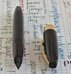 Photo of a pen produced by Sheaffer. Model: Sheaffer PFM. Filling system: "Touch Down snorkel". In black plastic resin. Version PFM-III.