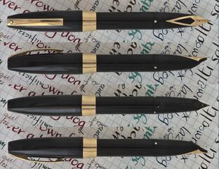 Foto di una penna Sheaffer. Modello: Sheaffer PFM. Caricamento "Touch Down snorkel". Realizzazione in resina plastica nera. Versione PFM-III.