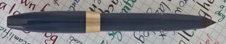 Photo of a pen produced by Sheaffer. Model: Sheaffer PFM. Filling system: "Touch Down snorkel". In blue plastic resin. Version PFM-III.