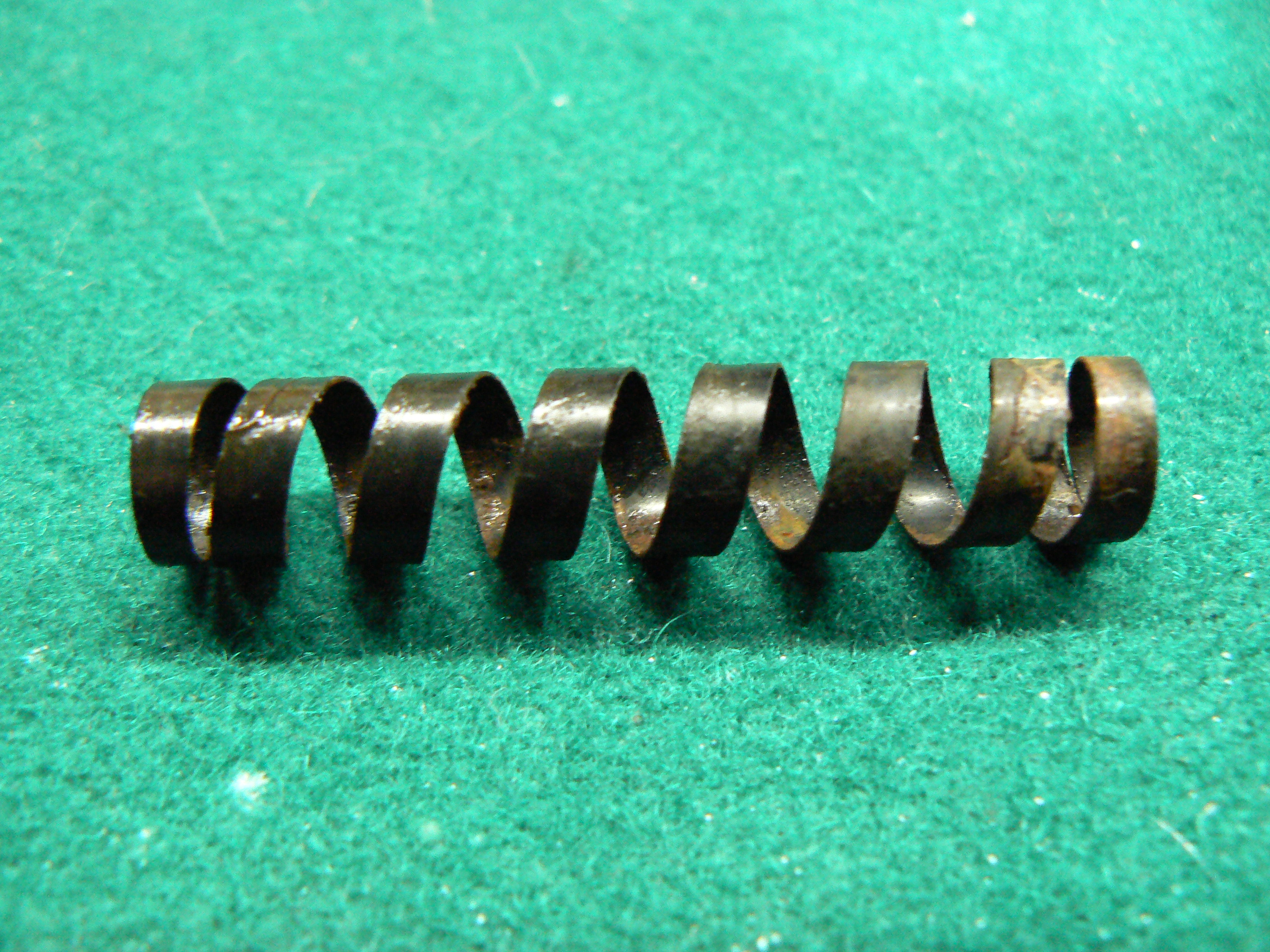 La molla in acciaio del meccanismo di una Snorkel Pen ossidata dopo il bagno e lo smontaggio.