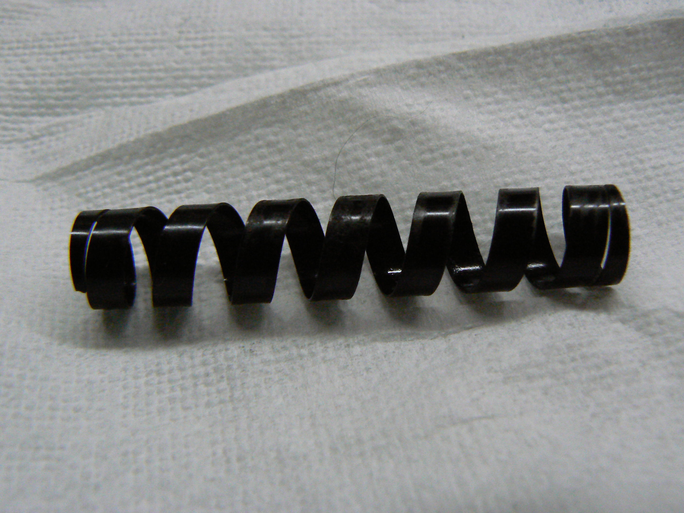 La molla in acciaio del meccanismo di una Snorkel Pen pronta per essere rimontata.