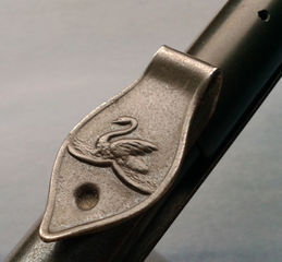 Foto di un accessorio Swan. Chiamato: Swan Metal Pocket. Realizzazione in metallo. Accessorio per traportare penne senza fermaglio, riporta il numero di brevetto (nº GB-190507113). Contributo di Giorgio (utente forum Musicus).