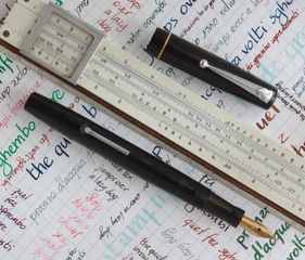 Photo of a pen produced by Swan. Model: Swan 6160. Filling system: lever filler. In black celluloid. White accents version.