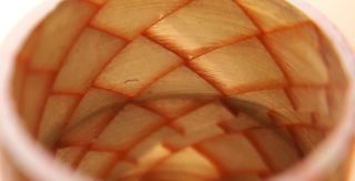 Foto di una penna Swan. Modello: Self-Filler. Caricamento a levetta. Realizzazione in celluloide a pelle di serpente grigia. Dettaglio del cappuccio. Evoluzione della serie SM?. Contributo di Giorgio (utente forum Musicus).