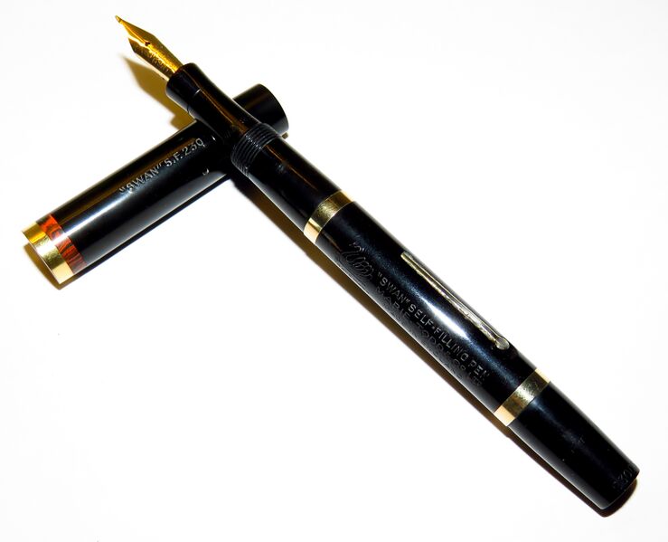 File:Swan-SelfFillingPen-SF230C-NoClip2RingsBlack-Posed.jpg