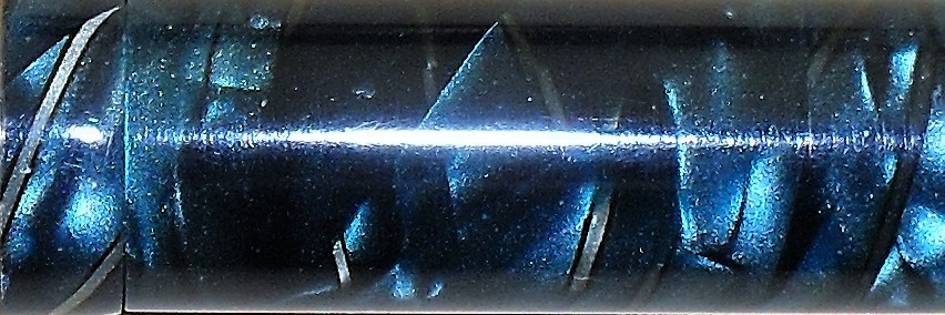 Esempio di celluloide di categoria Riproduzione di trame minerali e tipo Celluloide marmo tratteggiato - Hatched marbled, chiamata normalmente marmorizzata blu tratteggiata argento. Relativo ad una Astura. Estratto da questa immagine. Esempio realizzato da Esme, (utente forum Esme e utente wiki User:Esme).