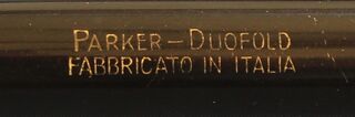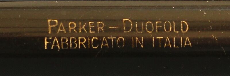 Celluloid sample category Semplice (tinta unita ed effetti) and type Celluloide uniforme (liscia o lavorata), usually called black. From a Duofold of Parker. Excerpt of this image.