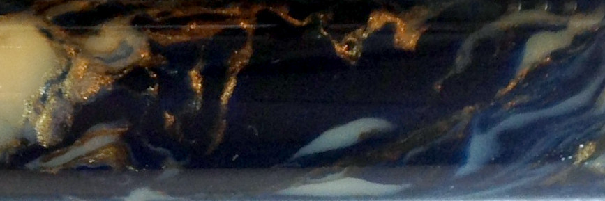 Esempio di celluloide di categoria Riproduzione di trame minerali e tipo Marmo - Marbled, chiamata normalmente marmorizzata blu/perla screziato oro. Relativo ad una Asco. Estratto da questa immagine. Esempio realizzato da Esme, (utente forum Esme e utente wiki User:Esme).