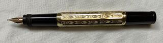 Photo of a pen produced by Vaitermass. Filling system: safety. With guilloché gold rolled overlay. Unknown model, octogonal faceted.
