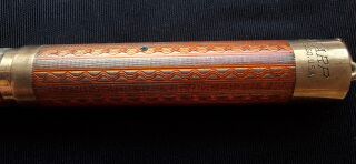 Photo of a pen produced by Eversharp. Model: Wahl Metal Pen. Filling system: lever filler. In engine turned red enameled vermeil. Detail of cap. Short size, in the Tinted pattern, red enameled version, code X3218R.