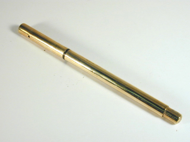 Photo of a pen produced by Waterman. Model: Waterman 502. Filling system: safety. With solid gold overlay. Early production sample.