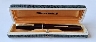 Photo of a pen produced by Waterman. Model: Commando. Filling system: lever filler. In brown (maroon) celluloid. With rare music nib.