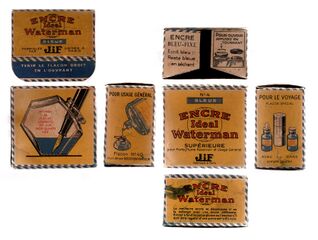 Photo of an ink bottle produced by Waterman. A "Flacon Tip-Fill" ink bottle.