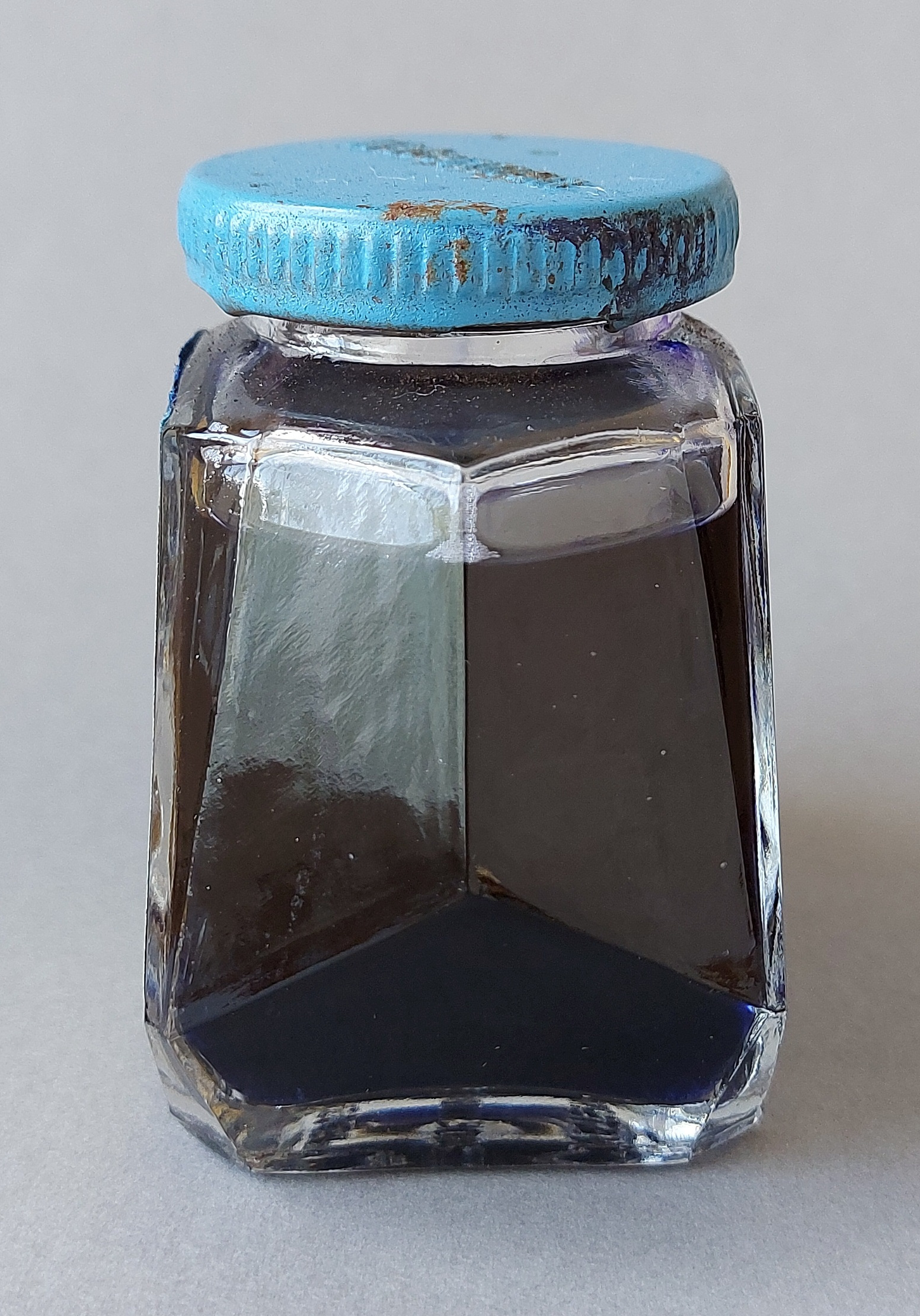Foto di una boccetta di inchiostro Waterman. Un calamaio "Flacon Tip-Fill". Contributo di Giorgio (utente forum Musicus).