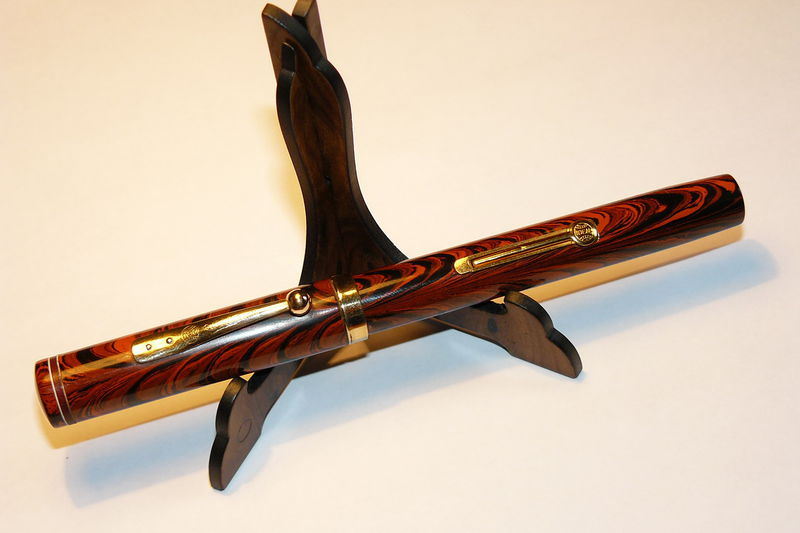 Foto di una penna Waterman. Modello: Ripple No. 7. Caricamento a levetta. Realizzazione in ebanite rippled. Con pennino di colore Red. Contributo di Giampaolo (utente forum.fountainpen.it gpaolo).
