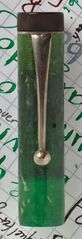 Photo of a pen produced by Yes OK. Filling system: lever filler. In jade green celluloid. Detail of cap. Flat-top model, steel nib Rover, has "Multiplex" imprint near the back (its unknow if it refers to the model name).