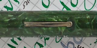 attuale09:31, 13 apr 2020Miniatura della versione delle 09:31, 13 apr 20202 000 × 1 000 (521 KB)Piccardi (discussione | contributi){{PhotoInfo |Marca=Yes OK |Oggetto=pen |Particolare=cap |Caricamento=lever |Materiale=celluloide |MatDesc_it=verde giada |MatDesc_en=jade green |Note_it=Modello flat-top, pennino in acciaio Rover, reca la stampigliatura ''"Multiplex"'' (no...