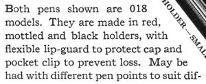 - [1] Pagina su "The American Stationer" che mostra un elenco di modelli fra cui gli "018" con lip-guard
