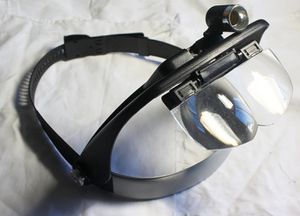 Nelle riparazioni in cui invece serve poter disporre di entrambe le mani, sono molto utili occhiali (o altri ausili simili come quello riportato nella figura a destra) dotati di lenti di ingrandimento per poter osservare i dettagli a mano libera. In alcuni casi questi han disponibile pure una lampada per illuminare l'oggetto e la possibilità di usare (e sommare) diversi tipi di lenti.