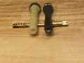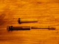 Può capitare che durante le operazioni di smontaggio del pistone, o durante la sua manipolazione possa rompersi la parte filettata (M5, come quella dei dadi esagonali di 10 mm) come si può vedere nella figura 1. Se avete un pistone in queste condizioni, è molto probabile che vi si sia rotto nel tentativo di estrarlo dalla parte anteriore. La madrevite posteriore spinge il pistone solo fino al bordo della filettatura che alloggia il puntale. Questa filettatura ostacola l'uscita del pistone, e quindi è forte la tentazione di afferrare il pistone con una pinzetta e tirare. Talvolta va bene e ci si risparmia il lavoro di smontaggio completo, ma talvolta va male e ci si ritrova con un pistone come quello della figura 1. Quindi la miglior cosa da fare invece è di estrarre il pistone spingendolo dalla parte posteriore, come descritto nella pagina Smontare Aurora 88.