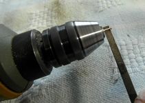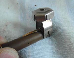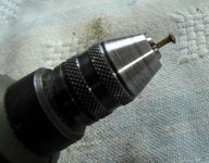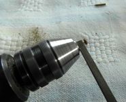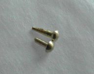 Per ridurne le dimensioni li si stringano quindi nel mandrino di un mini trapano e con l'aiuto di qualche piccola lima li si riduca e li si modelli sino a raggiungere dimensioni e forma volute (vedi figg. 4-5), lasciandoli di una lunghezza sufficiente a penetrare per lo spessore di almeno tutto il cappuccio (ma se penetrano anche nel contro cappuccio, tanto meglio). Il risultato finale è illustrato in figg. 6 e 7.