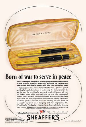 I modelli Crest prodotti il primo anno, come mostrato nella pubblicità a lato, sono caratterizzati da un cappuccio che si avvita sulla filettatura praticata sulla parte terminale del blocco pennino, prodotti sia con cappuccio in metallo laminato oro che in argento. La penna era inserita nella produzione di fascia più alta con un prezzo di vendita, per la versione con cappuccio in metallo, di 13,75$ (e marcata perciò come 1375). Intorno al 1940 vennero introdotti anche le versioni Crest Masterpiece (modello 3500, al prezzo di 35.00$) con cappuccio in oro 14 carati liscio o rigato e la Crest Masterpiece Honor sempre con cappuccio in oro decorato con una incisione (modello 4250, al prezzo di 42.50$).