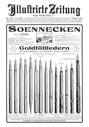 • 576: modello a contagocce, forma cilindrica, cappuccio con chiusura di tipo straight cap corpo liscio con stampigliatura "Soennecken", raccordo con la sezione con scalino con tre anelli, cappuccio tipo cone-cap ma più svasato. Penna con pennino grande con foro di areazione oblungo, costo 12 marchi. Vedi questa pubblicità.