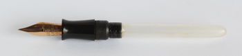 Una volta ripulito il collare della sezione, occorre incollarvi il sacchetto, anche se c'è chi si affida alla elasticità dello stesso (una volta inserito nella penna non vi sono sforzi significativi che ne favoriscano l'estrazione) o lo fissa legandolo con del filo da cucito. Qualora lo si incolli il collante consigliato è lo shellac (che in italiano altro non è che la gommalacca). Esso infatti è facilmente reversibile, quando è secco lo si può ammorbidire con il calore (anche se questo diventa sostanzialmente inefficace con incollaggi molto vecchi in cui lo shellac è cristallizzato) e se ne usa troppo o ci si sporca le dita o lo si sbrodola su altre parti della penna lo si può rimuovere facilmente con un po' di alcol su un panno pulito (da sacrificare, non usate la vostra camicia/maglietta preferita ...) che lo scioglie anche quando cristallizzato.