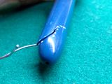 Nell'esempio in fig. 9 possiamo vedere una sezione che presentava un danno tale da rendere inutilizzabile la penna. Si sarebbe potuto tagliare la sezione al limite della finestrella di ispezione e poi con l'utilizzo di un tornio occorreva rifare la sede all'interno della finestrella per poter inserire ed incollare un'altra sezione. Ma senza un tornio ... In questo caso, la sezione è stata riparata con il metodo descritto sopra. La penna è in funzione da un paio di mesi ed il conduttore con il pennino sono saldamente ancorati.