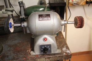 Benché l'attrezzo più adatto per l'uso delle spazzole sia un motore dedicato a velocità e direzioni regolabili, come quello di fig. 3, si può ottenere un risultato sostanzialmente equivalente montando le spazzole su un trapano, e bloccando lo stesso con una morsa, come illustrato in figg. 4 e 5.