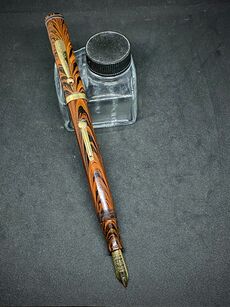 Le penne sono realizzate in ebanite nella particolare lavorazione rippled, tranne che per il fondello del corpo che è in ebanite rossa con incisa la misura della penna. La clip e le decorazioni sono in metallo laminato oro, il pennino è in oro a 14 carati.