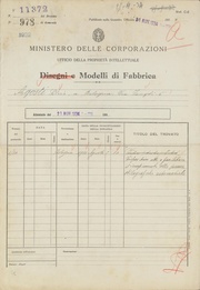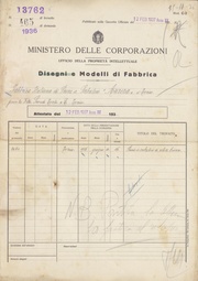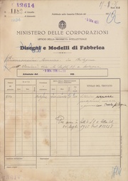 | 20:40, 3 set 2025 | Privativa-Industriale-13382.pdf (file) | 1,49 MB | Piccardi | == Dettagli == {{InfoModello |Numero=13382 |Data=1936-09-22 |Richiesto=1936-03-27 |Titolare=Federico Centola |Tipo=di fabbrica |Titolo=Scatolina porta penne e dolciumi foggiata a forma di pesce |Domanda=338 |Ufficio=Bologna |Fonte=[https://tecadigitaleacs.cultura.gov.it/media/ricercadl?rictree=MINISTERO+DELL%27INDUSTRIA%2c+DEL+COMMERCIO+E+DELL%27ARTIGIANATO%2fUFFICIO+ITALIANO+BREVETTI+E+MARCHI%2fArchivio+generale%2fModelli%2fBrevetti+dal+n.+1+al+n.+100.000 Archivio Centrale dallo Stato] }} | 1 | |