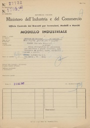 | 09:58, 2 set 2025 | Privativa-Industriale-29597.pdf (file) | 7,27 MB | Piccardi | == Dettagli == {{InfoModello |Numero=29597 |Data=1948-11-22 |Richiesto=1948-08-23 |Titolare=Riccardo Ferro |Tipo=di utilità |Titolo=Dispositivo per provocare a volontà la fuoruscita o il rientro della parte scrivente di una stilografica dal suo astuccio |Domanda=1408 |Ufficio=Torino |Fonte=[https://tecadigitaleacs.cultura.gov.it/media/ricercadl?rictree=MINISTERO+DELL%27INDUSTRIA%2c+DEL+COMMERCIO+E+DELL%27ARTIGIANATO%2fUFFICIO+ITALIANO+BREVETTI+E+MARCHI%2fArchivio+generale%2fModelli%2fBreve... | 1 | |
