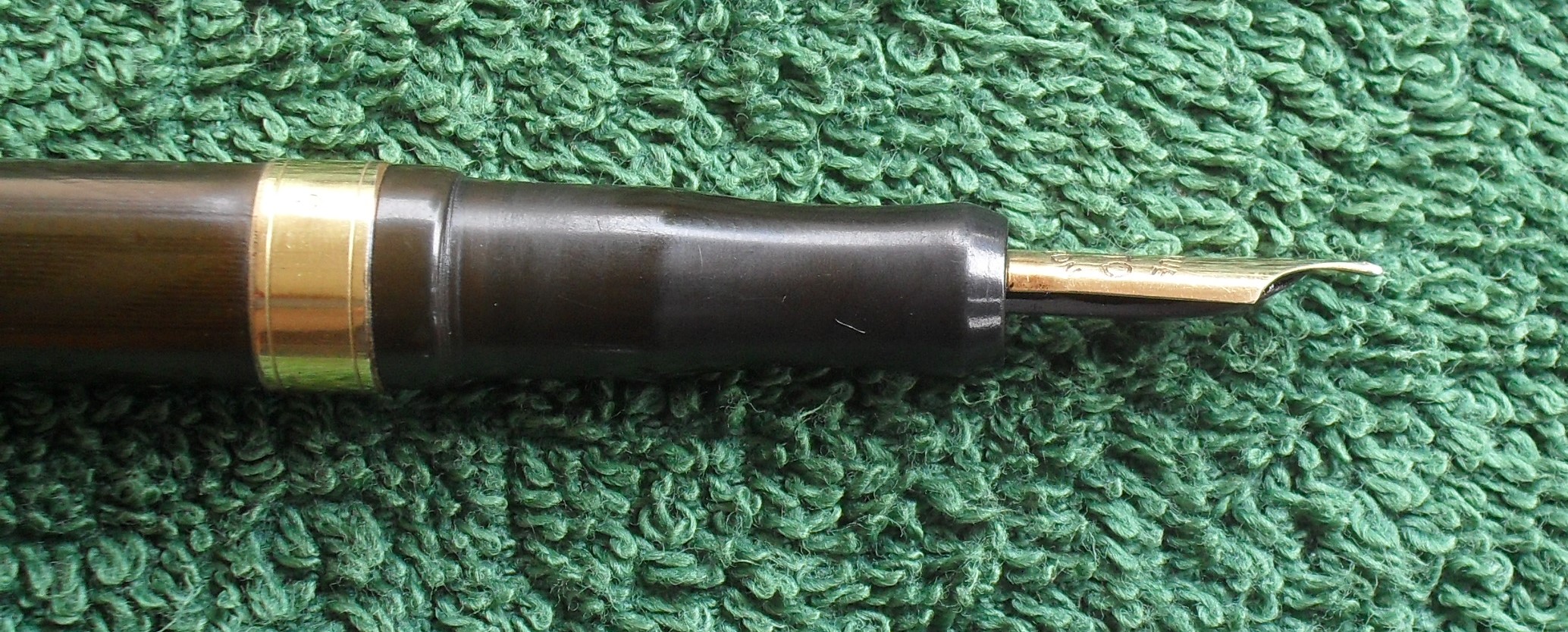 Foto di una penna Onoto. Modello: Onoto N. Caricamento a siringa rovesciata. Realizzazione in ebanite nera. Versione con due bande in oro 9K. Contributo di Alberto (utente forum A Casirati).