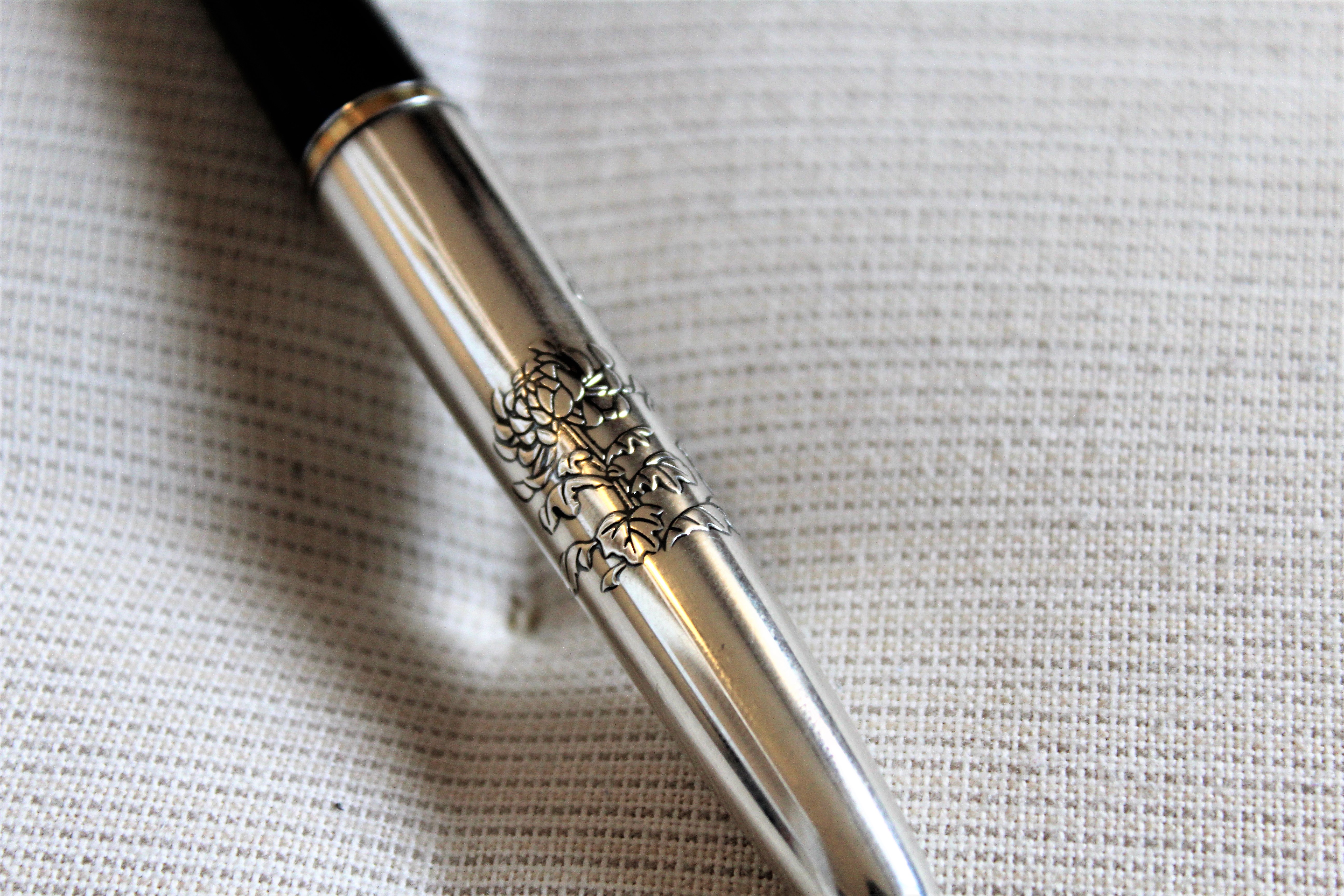 Photo of a pen produced by Pilot. Model: Sterling Silver Crisantemi. . In sterling silver. Dated 1979.
