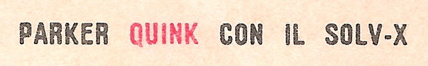 | − | Estratto di una [[:File:1950-07-Parker-51-Schema.jpg|pubblicità]] di una [[Parker 51]] del 1950, che menziona il ''[[Solv-X]]'' come ingrediente speciale usato dalla [[Parker]] per il [[Quink]] | + | Estratto di una [[:File:1950-07-Parker-51-Schema.jpg|pubblicità]] di una [[Parker 51]] del 1950, che menziona il ''[[Solv-X]]'' come ingrediente speciale usato dalla [[Parker]] per il [[Quink]]. |