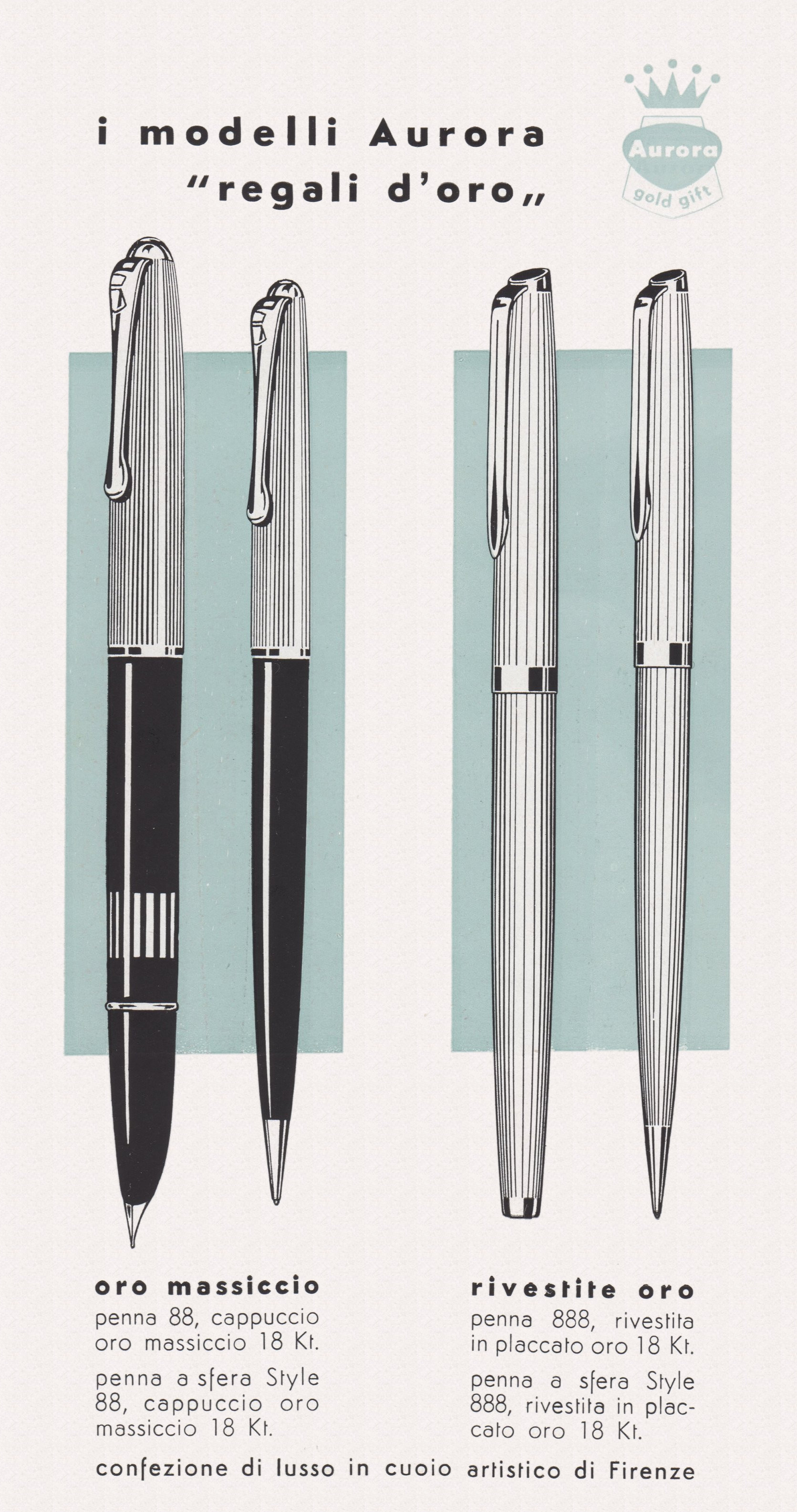 |Note_en=from models presented. Attached sheet. Advertising for the [[Aurora]] [[Aurora 88|88]] model with full gold cap, and the [[Aurora 888|888]] model, full rolled gold laminated version. {{OnBack|File:195x-Tentardini-Catalogo-All-02.jpg}} | |Note_en=from models presented. Attached sheet. Advertising for the [[Aurora]] [[Aurora 88|88]] model with full gold cap, and the [[Aurora 888|888]] model, full rolled gold laminated version. {{OnBack|File:195x-Tentardini-Catalogo-All-02.jpg}} | ||