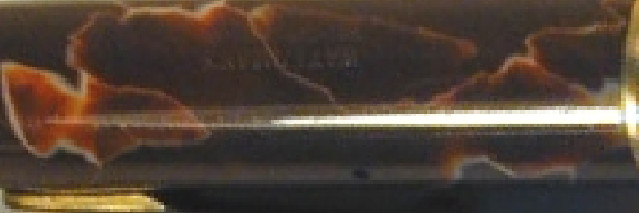 Esempio di celluloide di categoria Riproduzione di trame minerali e tipo Marmo - Marbled, chiamata normalmente marmorizzata rosso/marrone, chiamata Brown/Mahogany dal produttore. Relativo ad una Waterman94 della Waterman. Estratto da questa immagine.