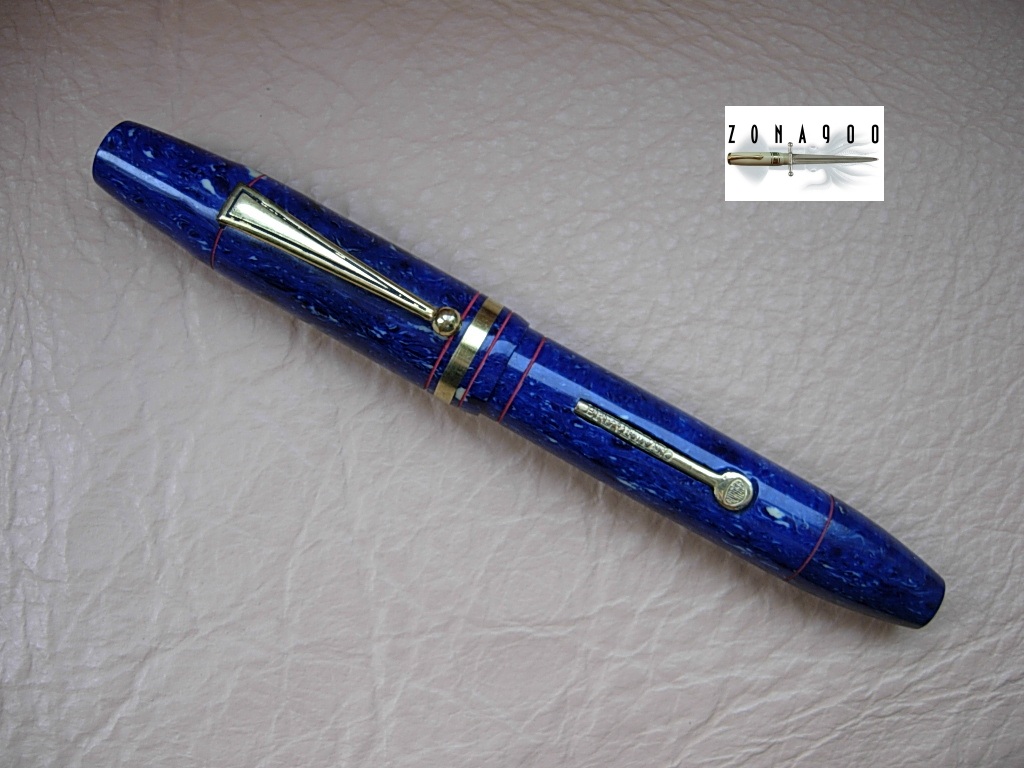 Foto di una penna Aurora. Modello: Superba. Caricamento a levetta. Realizzazione in celluloide blu lapislazzulo. Contributo di Paolo, http://www.zona900.it, (utente forum fountainpen.it sanpei).