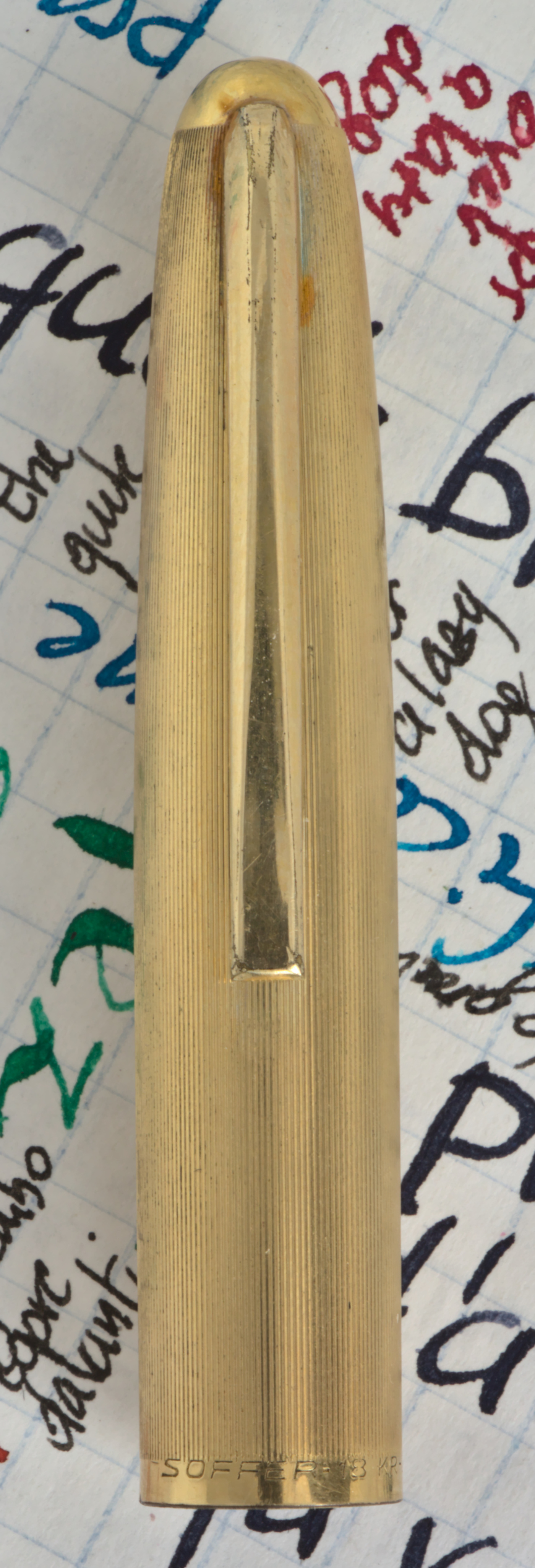 ({{PhotoInfo |Marca=Soffer |Oggetto=pen |Particolare=cap |Caricamento=piston |Materiale=celluloide |MatDesc_it=trasparente a righe verdi |MatDesc_en=green lined transparent |Licenza=Cc-by-sa-3.0 |Note_it=Modello ignoto a pennino coperto con cappuccio la...) |